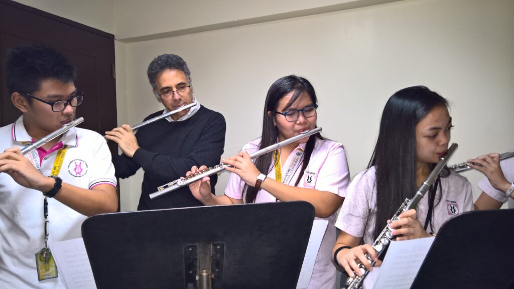 Formazione. Diplomato in flauto nel 1979 presso il Conservatorio “F. Morlacchi” di Perugia, si è perfezionato con Gustav Scheck, Marianne Eckstein e Deborah Kruzanski.